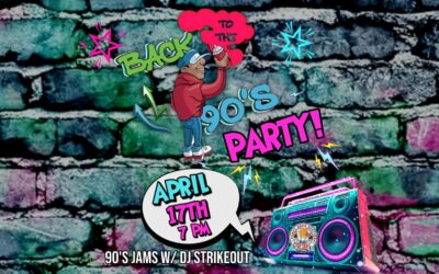 Throw on your favorite 90’s clothes and come get your party on with us 90’s style! Bright colors, JNKO pants, baby tees, flannel shirts, Grunge… the 90’s had it all! DJ strikeout will be playing all the 90’s jams so come get nostalgic