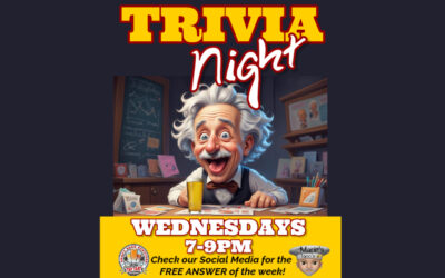 Join us for Trivia night Every Wednesday from 7-9pm. Food offered from Mario’s Tacos!