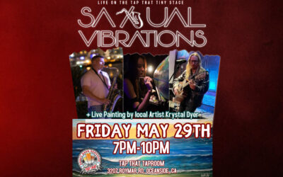Come rock out with us and San Diego based, high end entertainers Saxual Vibrations, a trio that consists of percussive acoustic guitarist and vocalist Matthew Armstrong, saxophonist Craig Palmer, and live painter Krystal Dyer. Friday May 29th.