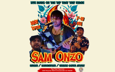 Join us on Friday May 15h as we welcome our dear friend (and one of our favorite people) Sam Onzo for another appearance on the Tap That Tiny Stage! Local musician Sam stays busy playing all over San Diego County. The Multi-talented singer-songwriter/live looping