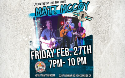 Join us on Friday Feb. 27th as we welcome Matt McCoy and friends to the Tap That Tiny Stage! Local Osider, Matt stays busy playing all over Oceanside and surrounding areas. The Multi-talented musician sings, plays guitar, and harmonica. Come show him lots of