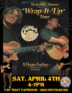 Join us for an afternoon of live music and celebration as we welcome back the Swingin’ Johnsons for their farewell tour stop on the Tap That Tiny Stage. After over a decade of rippin’ up stages all over SD county, they are moving on to do other things, so this will be their last performance with us. Trust me when I tell you that you do NOT want to miss out on this celebratory send off.
